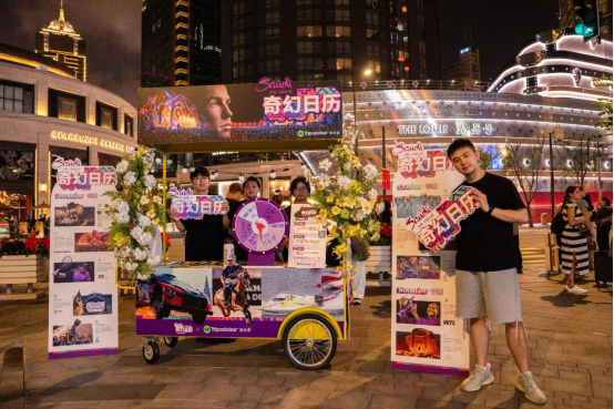 除此之外,沙特旅游局在上海市中心吴江路核心区域打造了一场花车文旅营销活动。此次活动通过多维度的创意布局,结合趣味合影打卡和特色文旅周边等互动环节,有效吸引了大量游客驻足参与,成功将沙特独特的旅游体验带给上海市民。